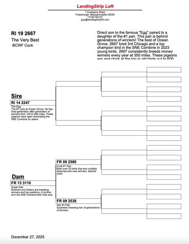 We also added some pigeons from top long distance fanciers in our combine that consistently are at the top of the race sheets from 400 to 600 miles,