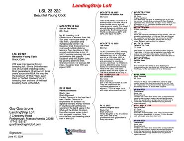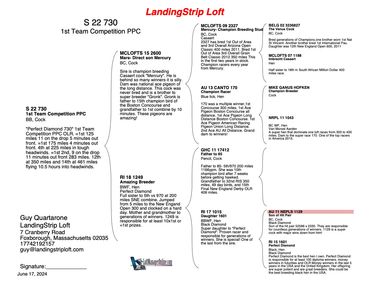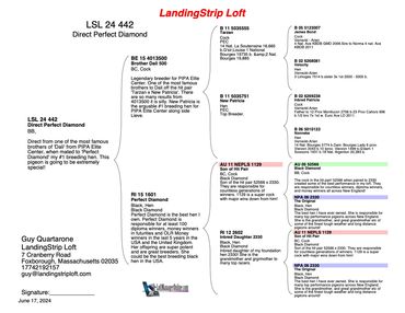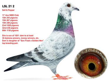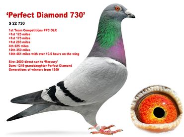As time has gone on, 1601s children, grandchildren, and great grandchildren have continued to score. From 100 to 500 miles, we have had great success with her line, from 800-1500ypm they will not disappoint! Perfect Diamond pigeons are extremely reliable and very tough pigeons. They will come home in the hardest of conditions. Cross these pigeons into anything and they will lead the flock!