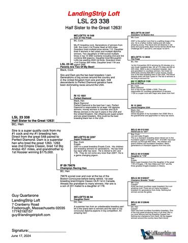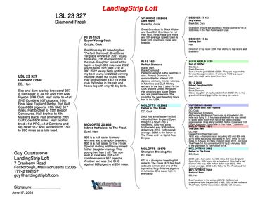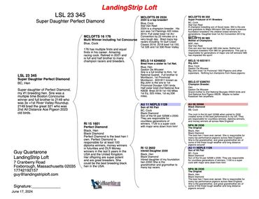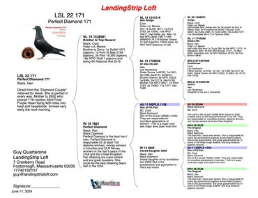 In 2022, I decided to name her ‘Perfect Diamond’ as she is just a perfect hen in the hands. Some of the greats in the sport including Frank McLaughlin, Mike Ganus, and many visitors have admired her true beauty and perfect confirmation. Her line will forever stay in my loft and hopefully for many more years her descendants will continue to win and hopefully change the pigeon sport as we know it.