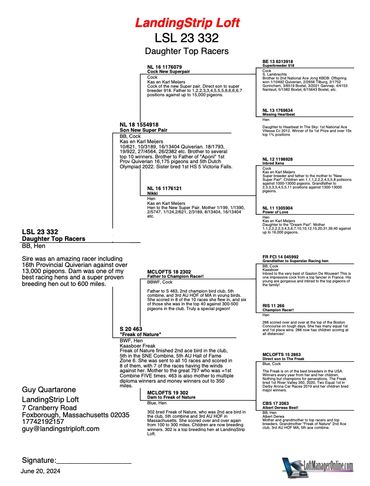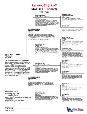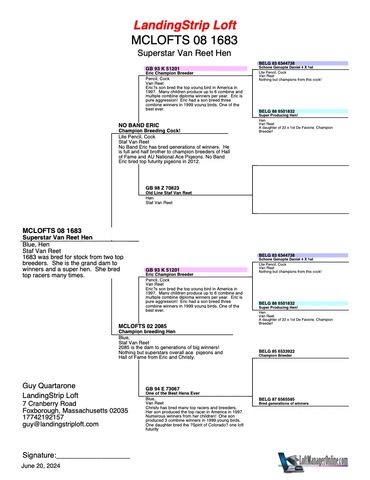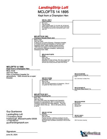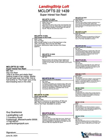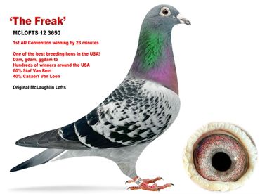 LandingStrip Loft has brought in the best of McLaughlin Lofts Staf Van Reets and The Freak bloodlines. Some of the best winning lines have been brought to our loft to stay! Check out our impressive collection of the best Freak and Van Reet pigeons in the country outside of McLaughlin Lofts!!