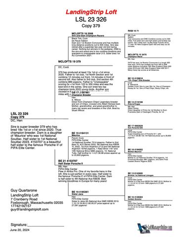 I only bred two rounds from the pair 379 x 1360, One was Unstoppable, and the other brother went on to breed =1st at the Apple Cup winning $18,000 for my good friend in the sport Fourflights Loft.