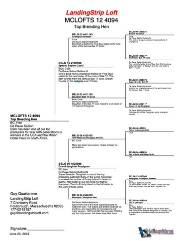 2470 also goes back to the famous Rhone Man and Dynamo cock. 2470 has gone on to be a spectacular breeder at McLaughlin Lofts. She will leave her mark as a top breeder for many years to come!